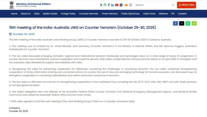 India and Australia have discussed emerging domestic, regional and international terrorism landscape and exchanged views on a wide range of areas of cooperation in counter terrorism, law enforcement, judicial cooperation and maritime security. The two day meeting of the India-Australia Joint Working Group on Counter Terrorism got underway in Canberra yesterday. Both sides condemned the terrorist attack on 22nd April in Pahalgam and the Australian side reiterated its support and solidarity with India. The two sides underlined strengthening cooperation in timely information sharing and concerted actions to counter the use of new and emerging technology for terrorist purposes. They discussed ways to strengthen cooperation in countering radicalization and violent extremism conducive to terrorism. The meeting was co-chaired by Joint Secretary (Counter Terrorism) in the Ministry of External Affairs, Dr. Vinod Bahade and Australia’s Ambassador for Counter-Terrorism, Gemma Huggins.