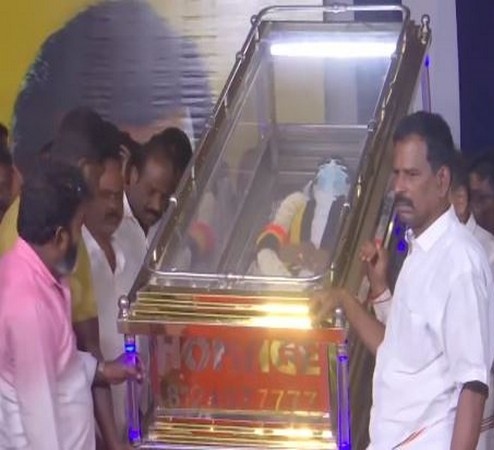 Mortal remains of DMDK chief Vijayakanth brought to Island Ground in Chennai